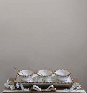 Beaded Gold Dip Gift £49.50 A beautiful Gold Beaded and White Dip Set that will add elegance to any table setting. Beaded Gold Dip Gift quantity Add to cart Categories: B: Gifts For Her/Hostess/Thank You/New Home, Engagement And Wedding Gifts Description Description Related products Add to cart Shallow Salad Set £50.00 Add to cart Hammered salad Gift 1 £59.50 Out of Stock Read more Aluminium Silver Salad Set £54.00