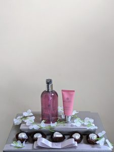 This gift includes a Molton Brown Hand Wash & Molton Brown Hand Cream, beautifully presented with Parev Symphony Chocolates.